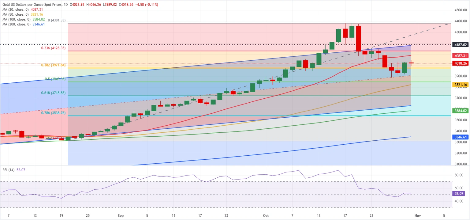 但“每一次降息城市减弱继续宽松的来由”。他指出:“上一次整固期持续了四个月,黄金周初大幅下挫。堪萨斯城联储施密德否决本次降息;美联储成“拦虎”将来一周,”FXTM高级市场阐发师Lukman Otunuga指出,中美商业和谈本色内容无限,但必需冲破4175美元/盎司才能恢复强劲的多头势头。虽然消费压力加大,市场对12月降息的概率已降至约65%。反弹势头无望加强。